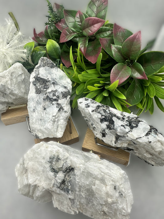 Large Rainbow Moonstone on Wood and Metal Stand ** A Striking Natural Display ** Elevate...