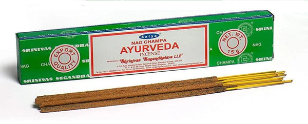 Description: Crafted with Ayurvedic principles, this incense blends the pure essence of Nag Champa with calming herbs to balance the doshas. Use it to cleanse your space and cultivate a sense of well-being, balance, and health.