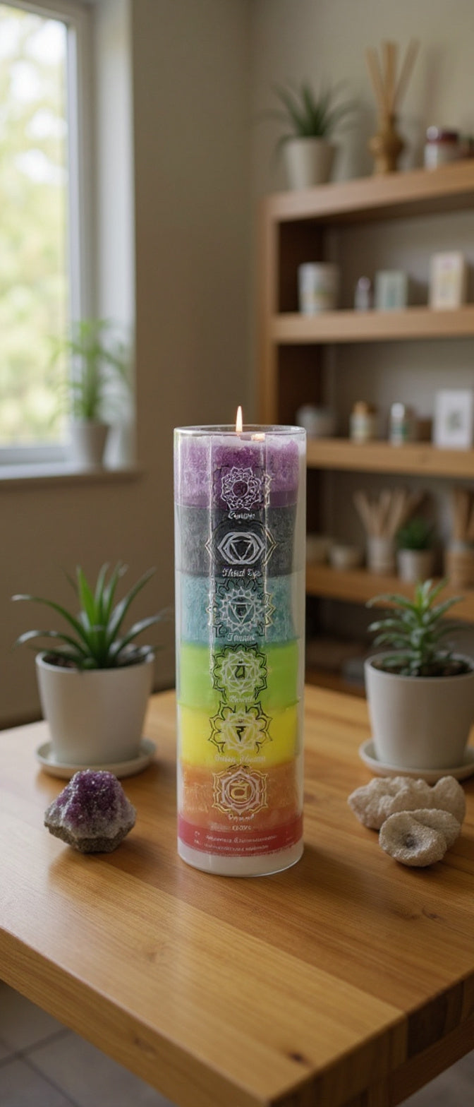 - Chakra-Color Alignment: Each section of the candle is dyed in a vibrant color representing one of the seven chakras, from Root to Crown, creating a visual reminder of balance and harmony.