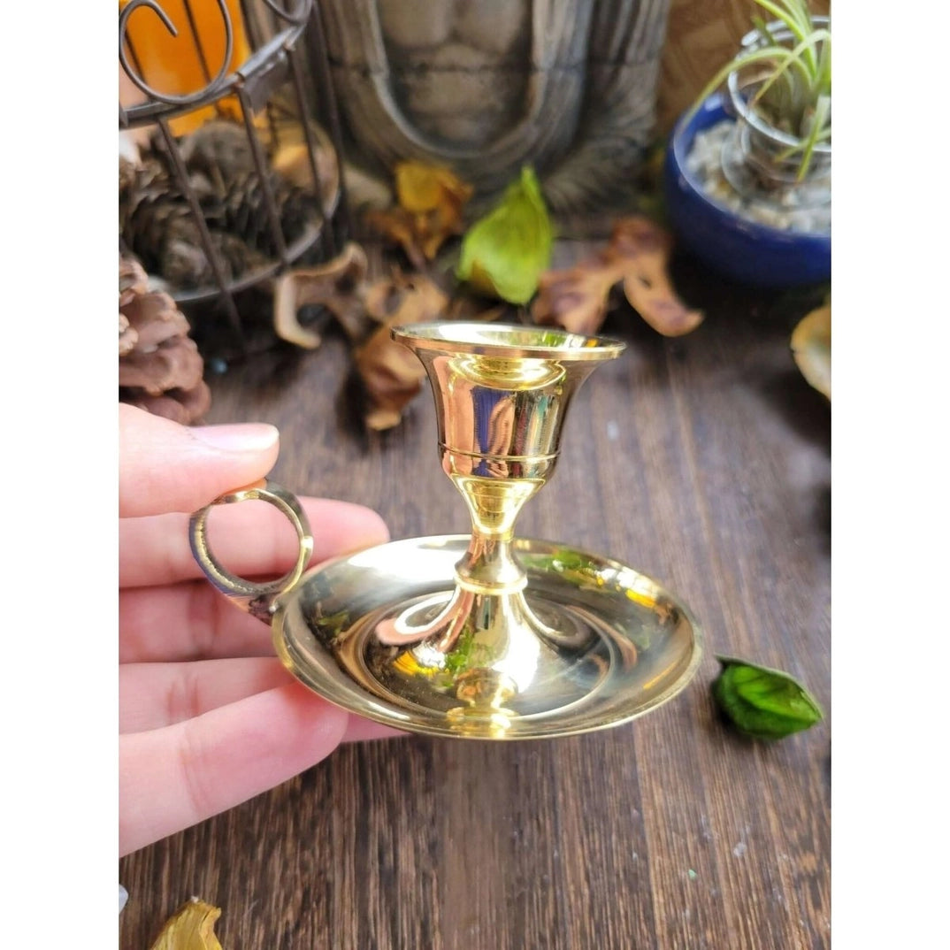 A Glow of Tradition: The Brass Chamberstick Tapered Candle Holder invites you to embrace the elegance and grace of tradition. Use it with intention, allowing the warm, flickering candlelight to add a touch of timeless beauty to your surroundings.
