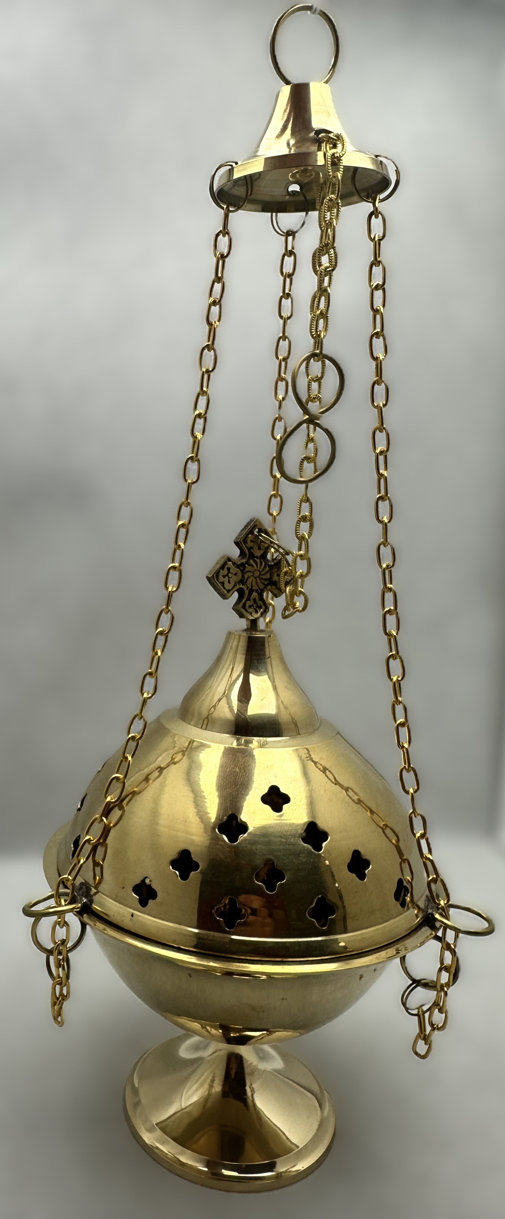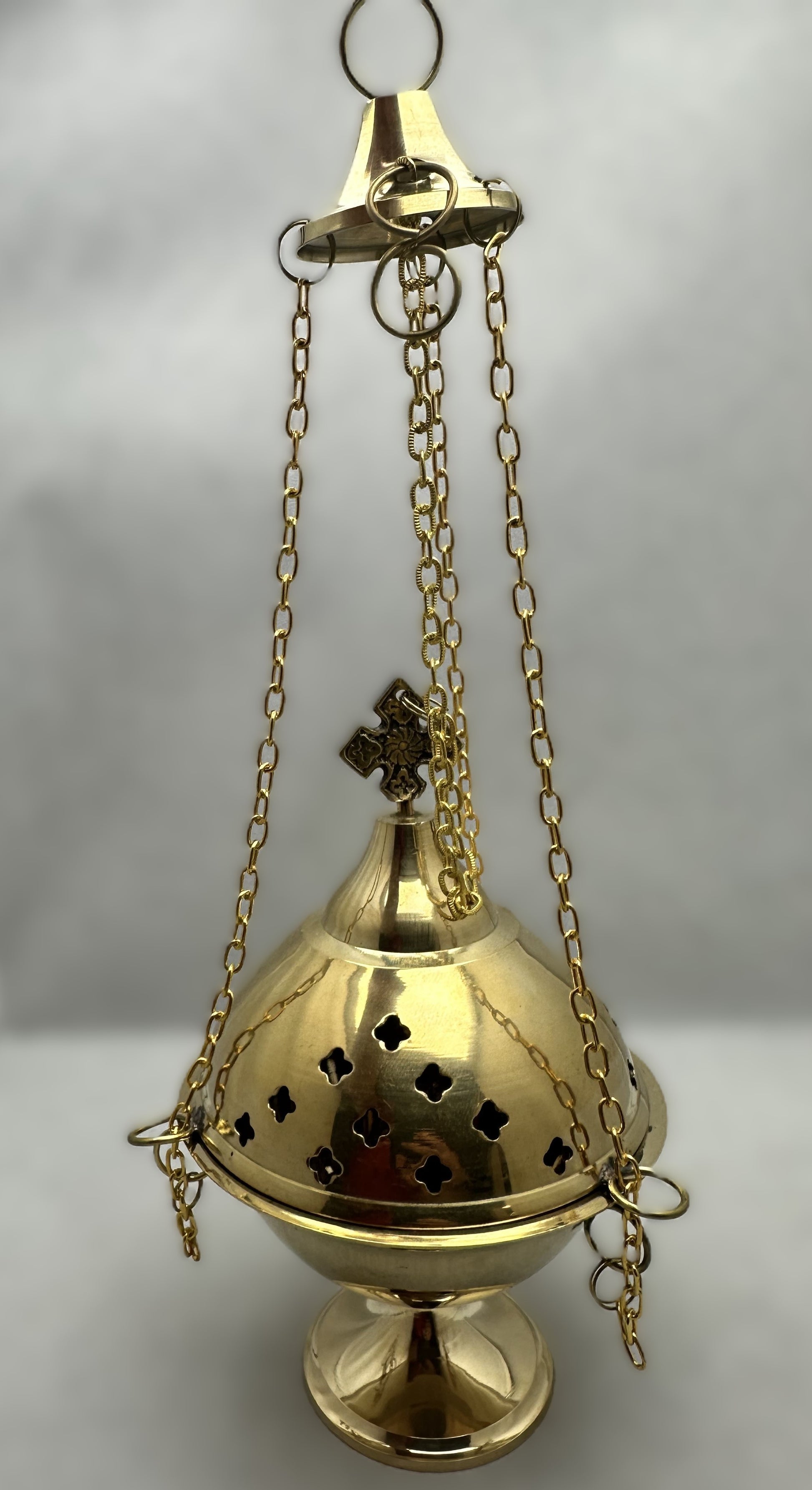 Elevate your sacred rituals with our Brass Cross Hanging Incense Censer, handcrafted with sacred intent to channel divine energy. This 7-inch burner, adorned with a cross design, is forged from high-quality brass, radiating a timeless glow. Perfect for burning resin incense or charcoal tablets, its hanging design allows fragrant smoke to weave through your space, purifying and uplifting the atmosphere. A vital tool for meditation, energy work, or ceremonial practices, this censer invites serenity and spiritual connection.