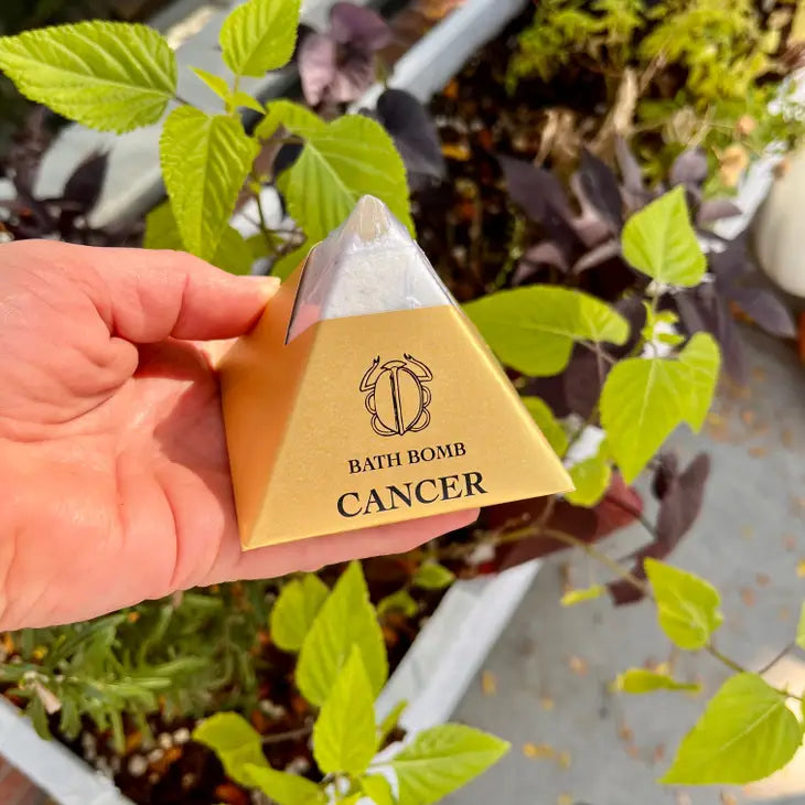 Elevate your bath time to celestial heights with our Crystal-Infused Cancer Zodiac Bath Bomb with a hidden crystal inside. Designed especially for those born under the nurturing and intuitive Cancer sign, this bath bomb is a unique blend of luxury and spirituality. Immerse yourself in the soothing waters and let the calming energies wash over you. With a delicate blend of scents tailored to Cancer's sensitive nature, this bath bomb is your ticket to relaxation and self-care. Dive into your element and align your energies with the universe. Embrace the magic of your zodiac sign with our Cancer Zodiac Bath Bomb today!