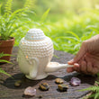 Step into a realm of serenity and spiritual harmony with our Translucent Buddha head ceramic oil burner. This exquisite Thai-Chinese style white porcelain piece is more than just a decoration, it’s a powerful tool to invite peace, mindfulness, and positive energy into your home. Crafted with delicate translucent ceramic, its serene Buddha head design radiates a calming aura, effortlessly blending elegance with spiritual depth. Whether you're meditating, practicing yoga, or simply seeking a moment of tranquility, this oil burner whispers to your soul, guiding you toward inner balance.