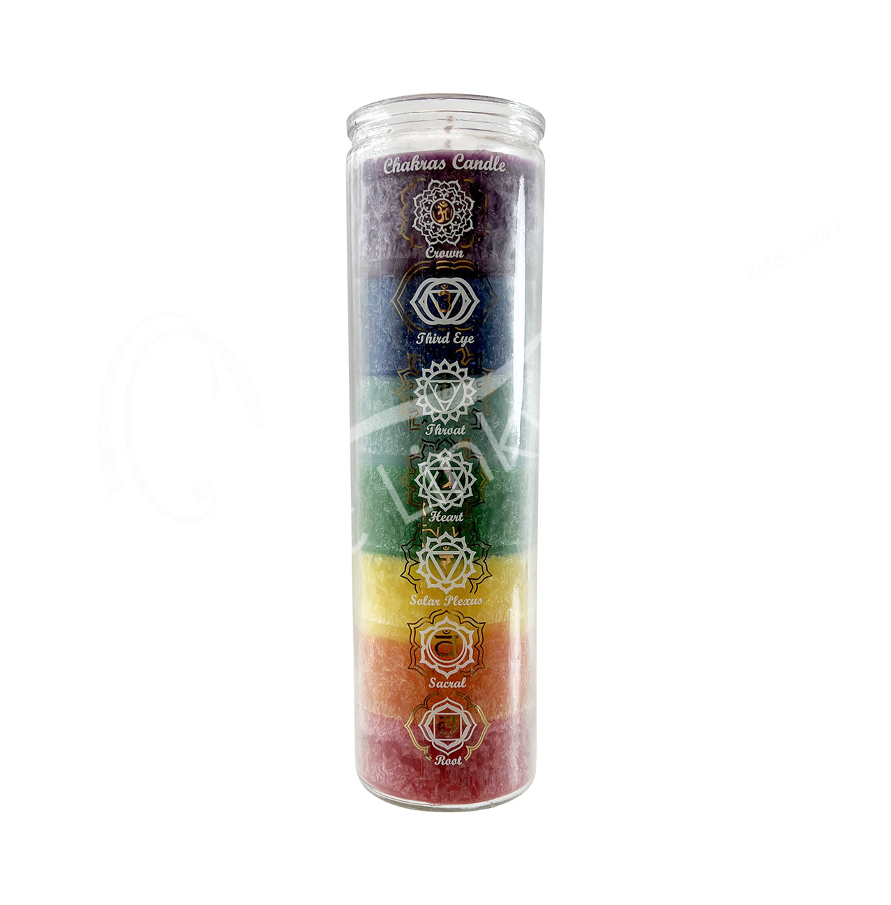 Seven Chakra Layered Candle: This powerful multi-colored candle features all seven chakra colors in stacked harmony. It offers a complete energetic reset, clearing blockages from root to crown in one unified burn. Ideal for overall energy balancing, deep healing rituals, and aligning body, mind, and spirit. The layered color symbolism moves energy gently through the system, supporting integration and full-spectrum activation.