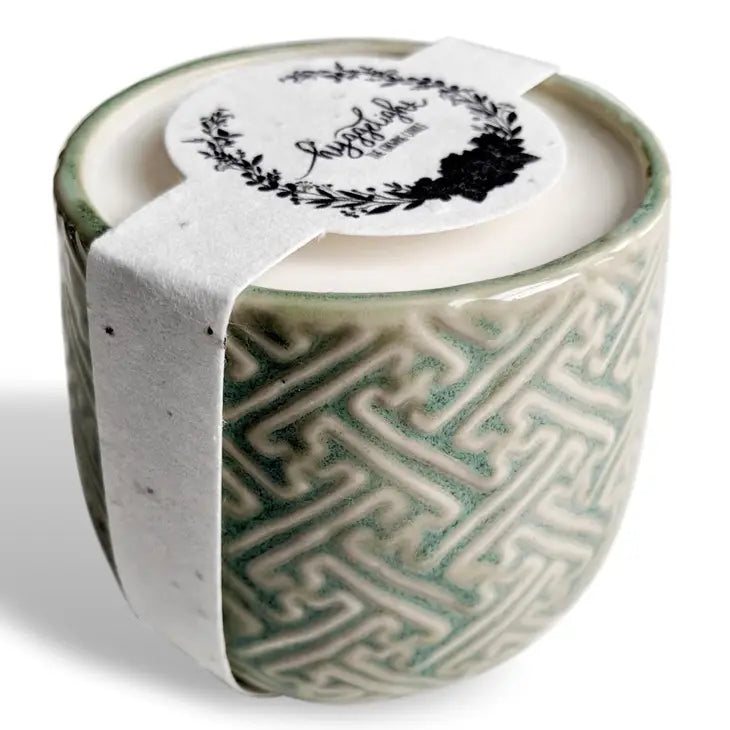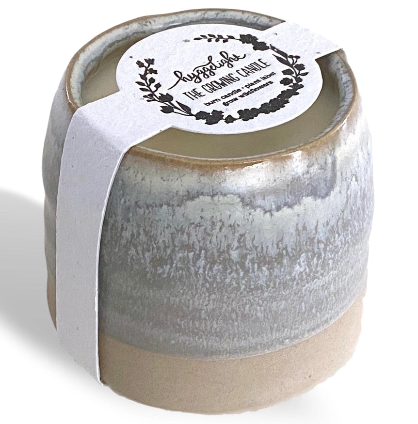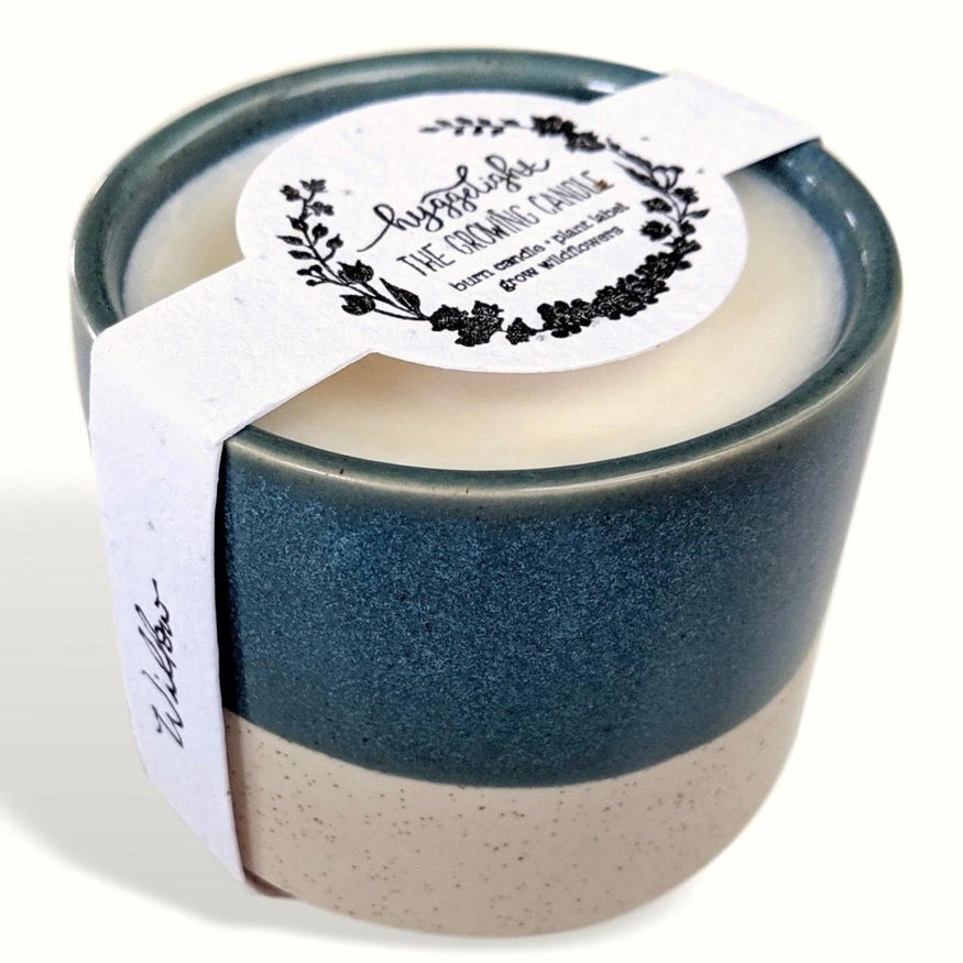 Crafted with love and care, our candles are made from premium soy wax, ensuring a clean and slow burn that releases a gentle, non-toxic fragrance into your space. Say goodbye to harsh chemicals and hello to a harmonious blend of scents that evoke tranquility and elevate your mood. But wait... these special candles don't stop there. We believe in sustainability, so each candle comes in a beautiful ceramic container with a label embedded with wildflower seeds. Once you have fully enjoyed your candle to its fullest burn potential which is about 55 hours, simply add potting soil to the empty ceramic container and plant the label. After that all you have to do is to watch the magic that nature provides as vibrant wildflowers bloom. It's a small act that makes a big impact on our planet, turning your candle experience into a lasting connection with nature.