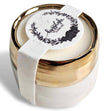 1) Clara Container Color and Characteristics: White glazed ceramic pot with a metallic gold finish.