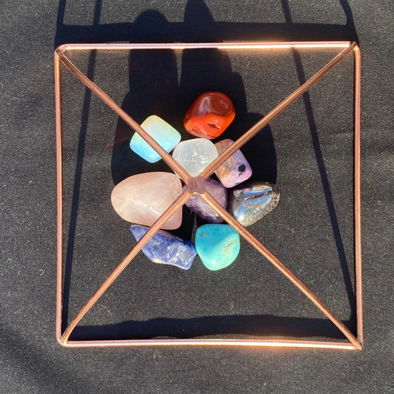 This copper pyramid is an excellent tool for energizing and amplifying the vibrations of crystals, pendulums, and other spiritual objects. Simply place your crystals or pendulums inside the pyramid to cleanse them of residual energies and recharge them with pure, high-frequency energy. The pyramid's geometry naturally magnifies the energy of anything within it, making it an ideal companion for those who work with gemstones, energy healing tools, or sacred objects. Whether you're meditating, conducting energy work, or setting powerful intentions, this pyramid enhances the effectiveness of your practices by harmonizing the energetic field around you.