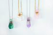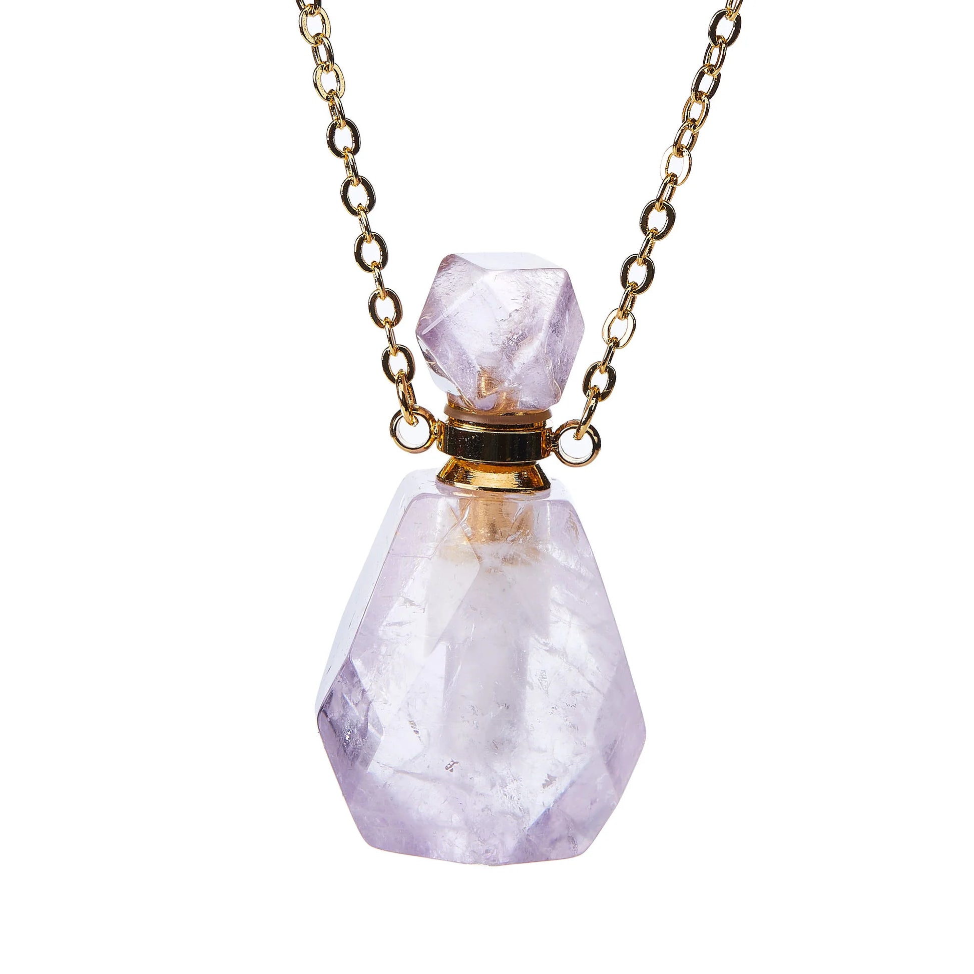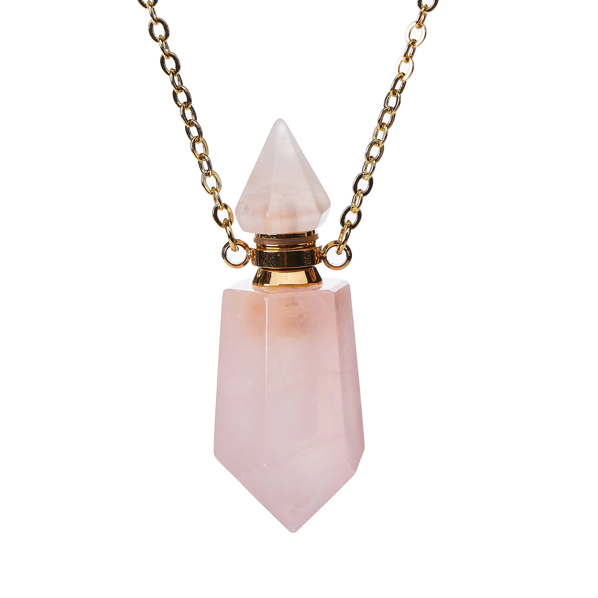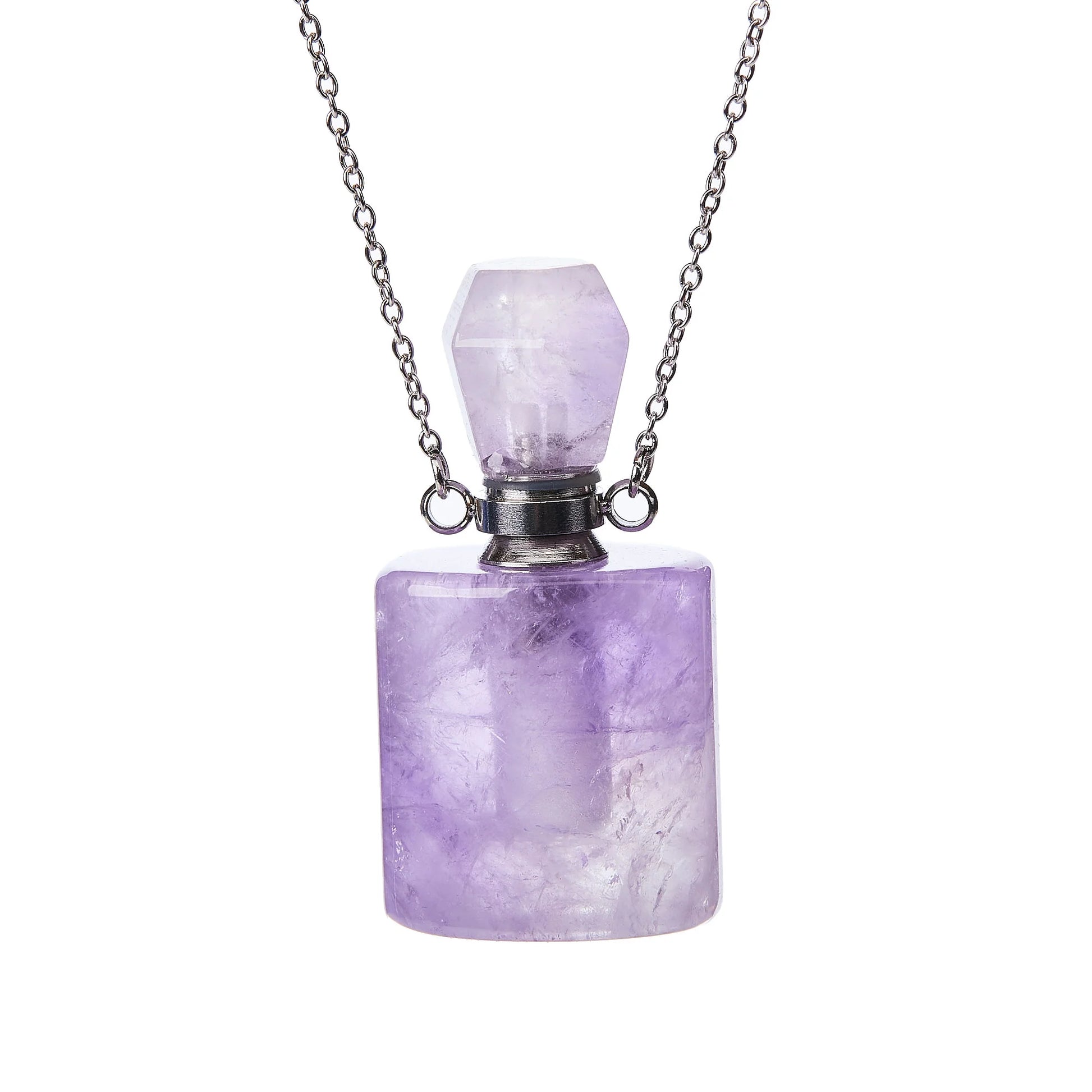Elevate your style and senses with our Crystal Aromatherapy Necklace Bottle. These exquisite pieces of jewelry are not just a fashion statement; They are a unique way to carry your favorite essential oils or fragrance with you, wherever you go. The crystal's natural energy enhances the aroma, making every inhale a delightful and rejuvenating experience. Embrace the fusion of style and wellness with this necklace bottle, and expand your daily routine to a new level of tranquility and elegance. Our Crystal Aromatherapy Necklace Bottle Sets comes complete with a beautiful Sterling Silver necklace, combining style and wellness in one elegant package.