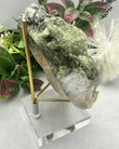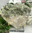 This piece includes the pictured crystal clear acrylic stand with adjustable metal holders, elevating its presence in your sacred space. Please note that due to the natural beauty and uniqueness of our Epidote Raw Quartz, the shape, size, and color of the product you receive may vary slightly from the images shown, ensuring your stone is uniquely yours.