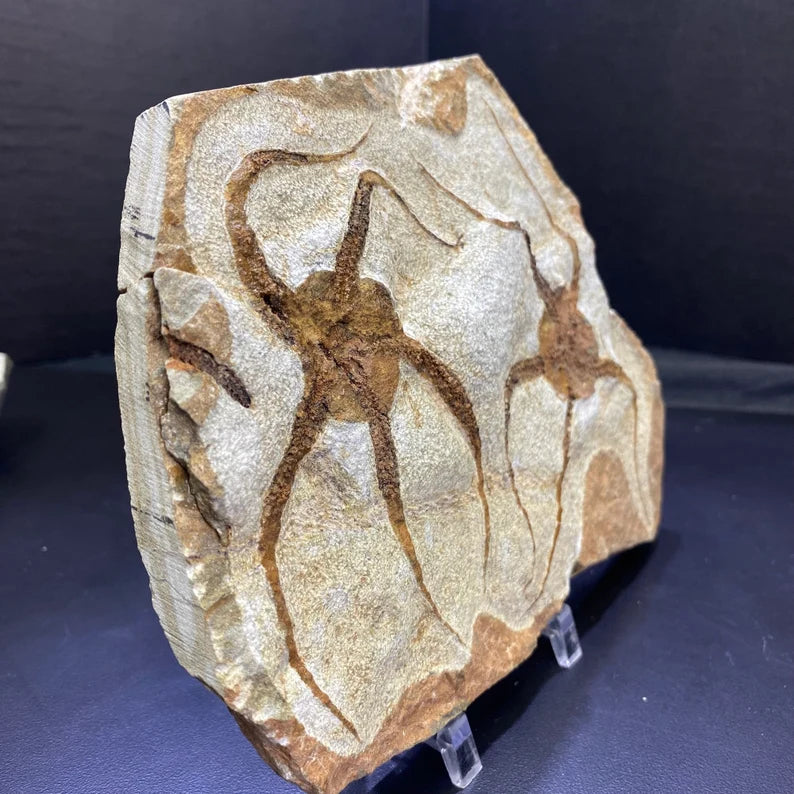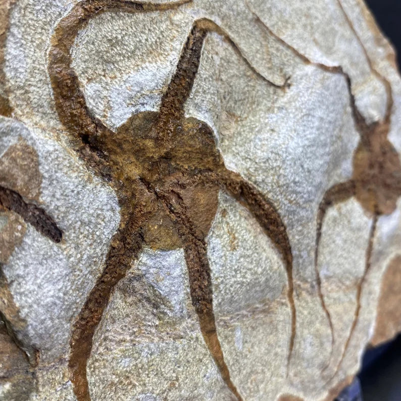 This one of a kind Fossil featuring Double Brittle Star Fish is a remarkable and rare find from the depths of Earth's history. These fossils capture the ancient remains of brittle starfish, fascinating marine creatures that lived millions of years ago. This unique specimen showcases not just one, but two of these prehistoric wonders, preserved in stone for eternity. Imagine holding in your hands a piece of the ancient seas, where these delicate creatures once roamed. Each fossil tells a story of a time long past, offering a glimpse into the mysteries of our planet's evolution. Whether you're a seasoned fossil collector or a budding paleontologist, this Double Brittle Star Fish Fossil is a captivating addition to your collection and a tangible link to Earth's ancient past. This is an amazing brittle star fish specimen that show lots of detail and it is a complete star. This marine fossil is million of years old. Brittle Stars have five long arms which are connected to a central disc. These fossils are only found to the east of Charmouth, around Eype. This group of animals is still alive today and look very similar to their fossil ancestors. Display it proudly and let it inspire your curiosity about the wonders of the natural world.