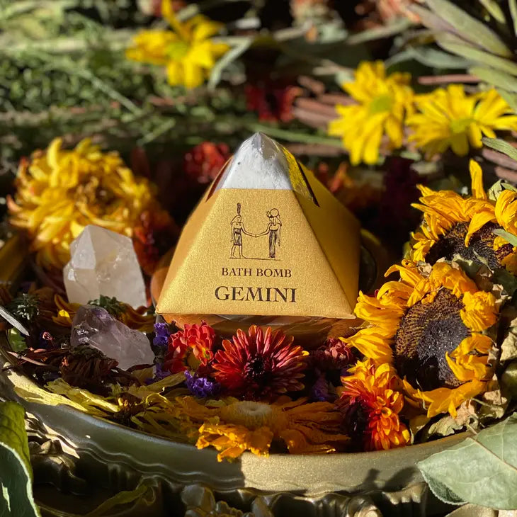 Unlock the duality of your Gemini spirit with our Gemini Zodiac Bath Bomb, complete with a hidden crystal surprise! Indulge in a bath experience that mirrors your dynamic personality, as the bomb fizzes away to reveal a hidden gem that makes this bath bomb that much more awesome! Embrace the curiosity, wit, and adaptability that define Geminis while enjoying the soothing scents and nourishing ingredients. Dive into the magic of the stars, and let each bath become a cosmic journey of self-discovery and rejuvenation. Elevate your self-care routine with our Gemini Zodiac Bath Bomb and celebrate the unique essence of your zodiac sign