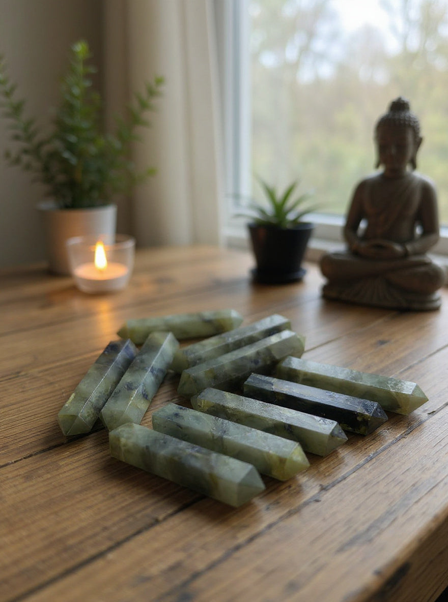 Disclaimer: Each wand is handmade from natural crystals, making every piece unique. Variations in color, shape, and pattern are normal and add to the individual beauty of each crystal. Sold individually. Any additional items shown in images are for styling purposes only and are not included. These stones are intended for metaphysical and spiritual use and do not replace professional medical or psychological care. For safety, crystal wands are for external use only—avoid pointing toward eyes, inserting into the body, or using as a weapon. Keep away from children and pets.