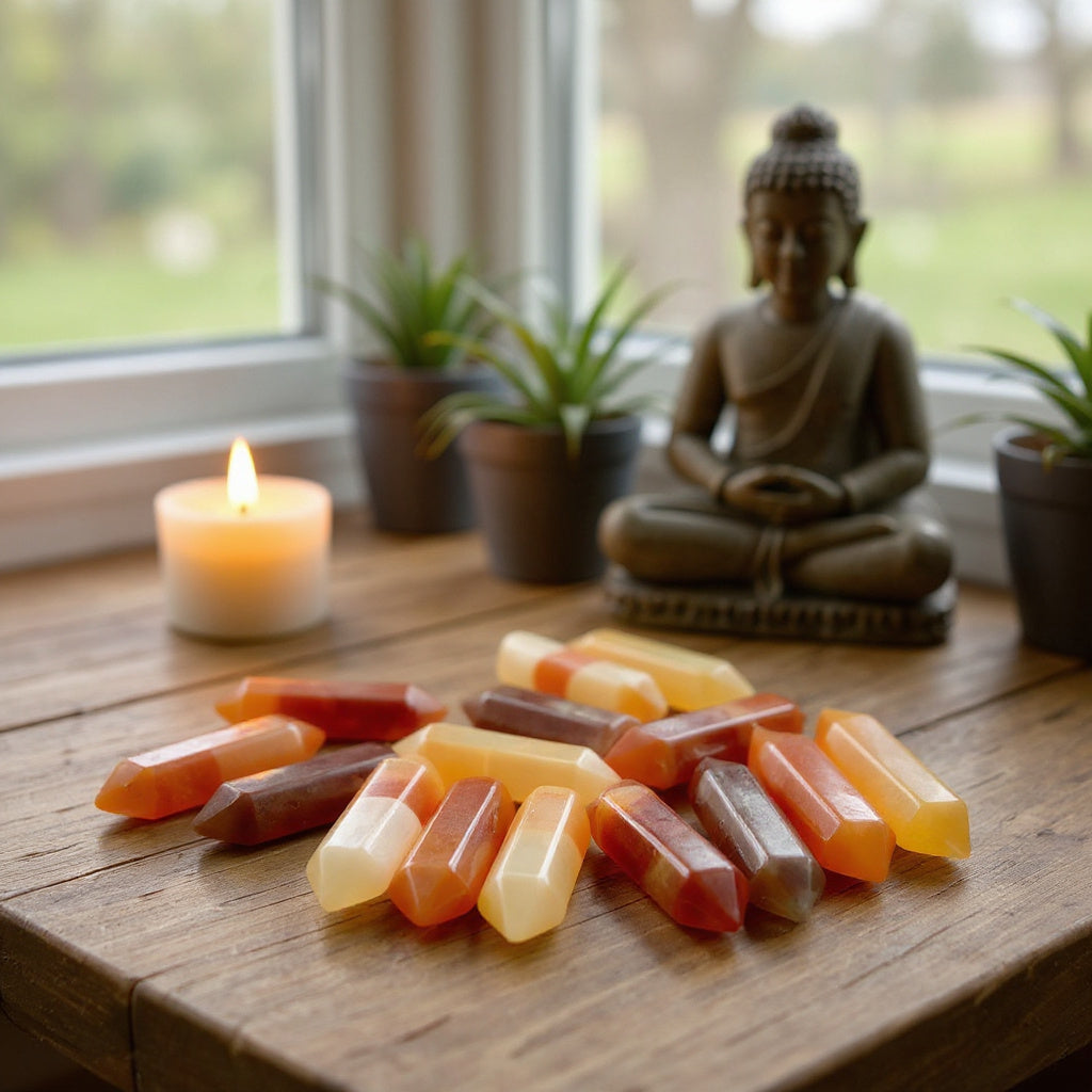 Red Carnelian (Sacral Chakra) – Ignites passion, creativity, and motivation