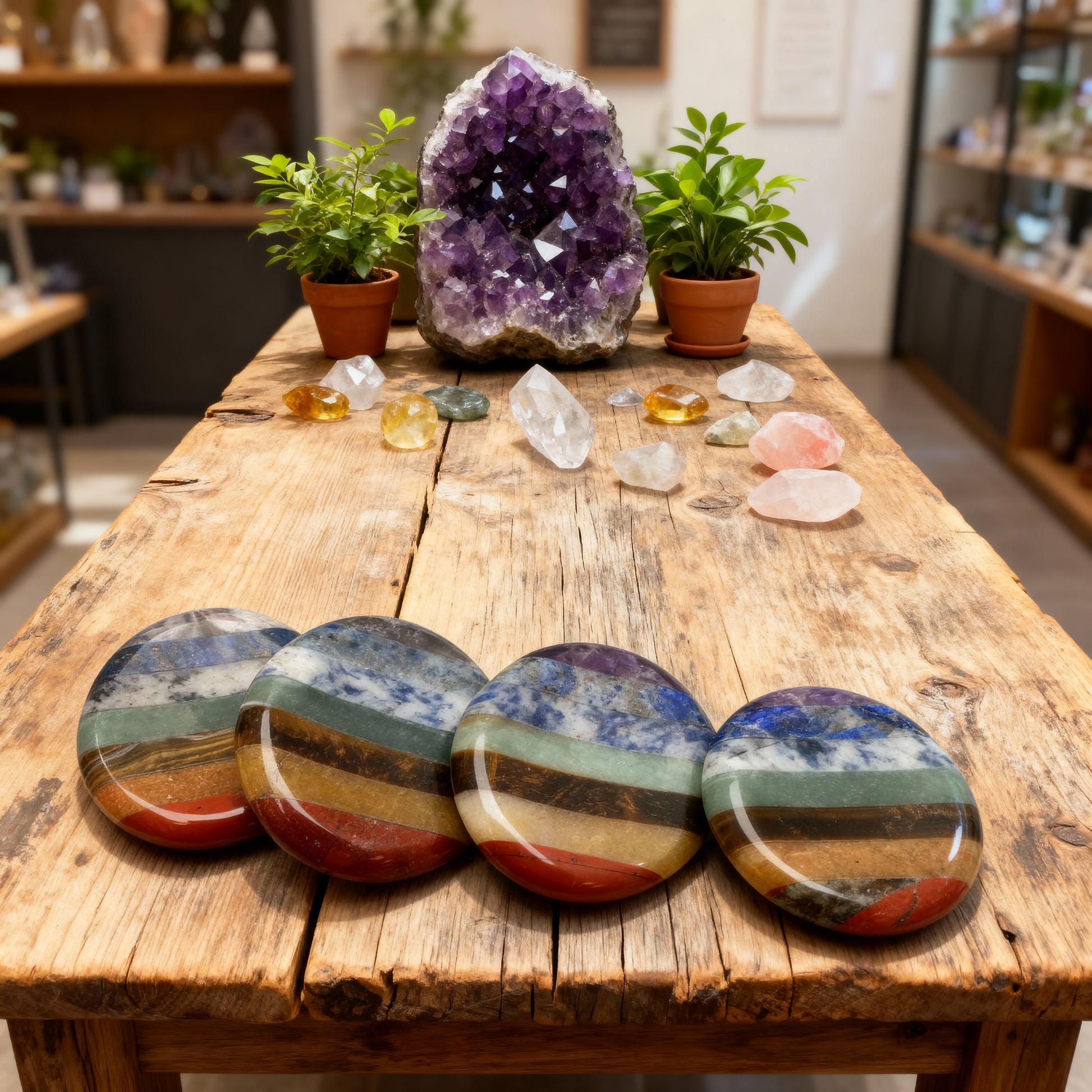 Seven Chakra Palm Stone: This stone embodies the harmonious resonance of all seven major chakras, serving as a tuning tool for balanced energy flow.