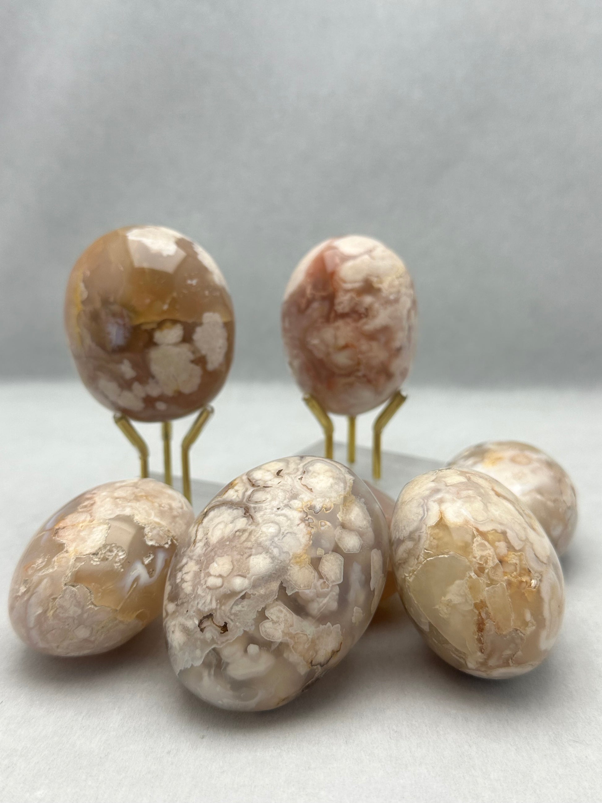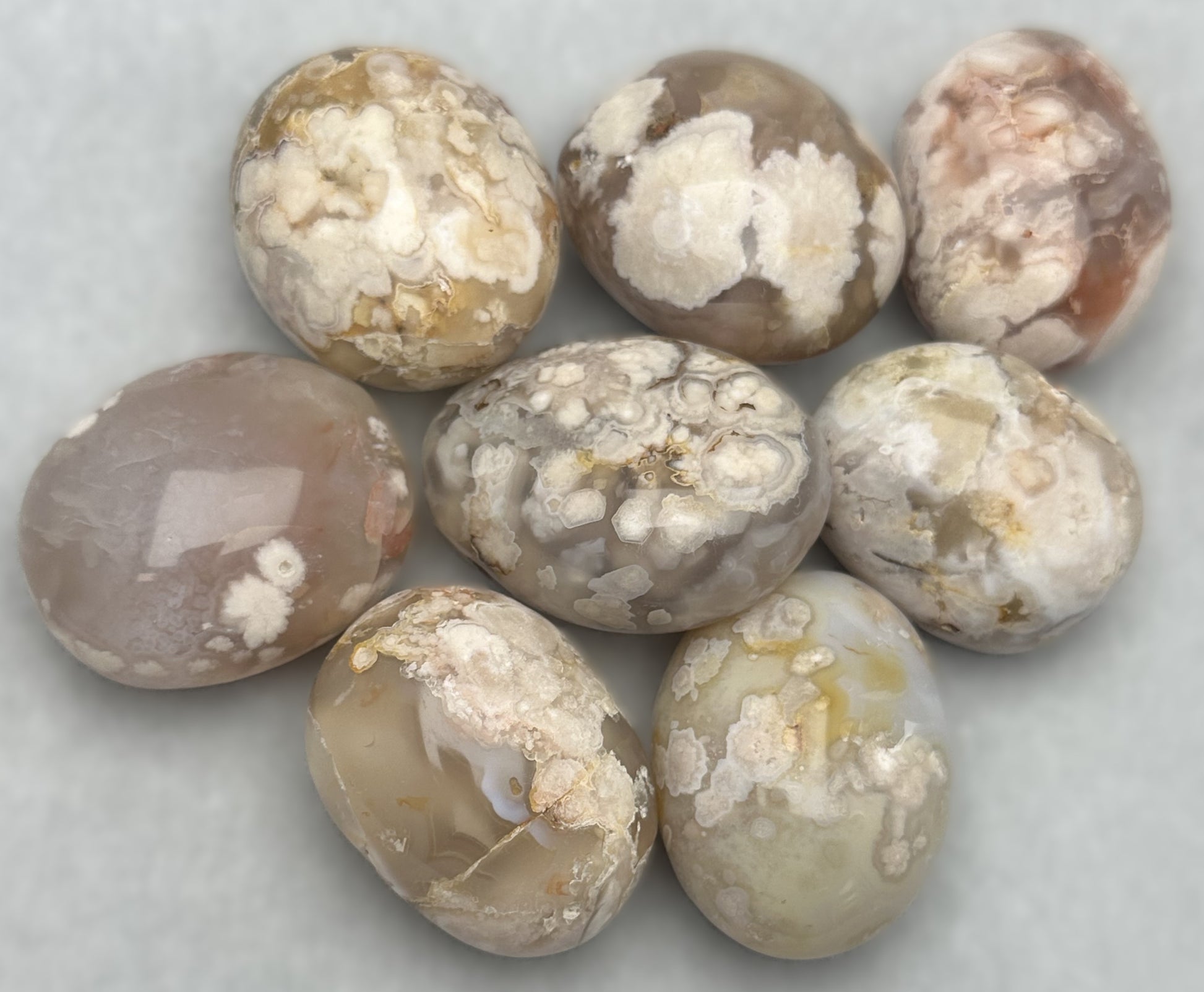 Whether you’re drawn to its mesmerizing appearance or the profound spiritual benefits it offers, these Polished Grade A Flower Agate Stones is a must-have for those seeking emotional balance, personal growth, and inner peace.