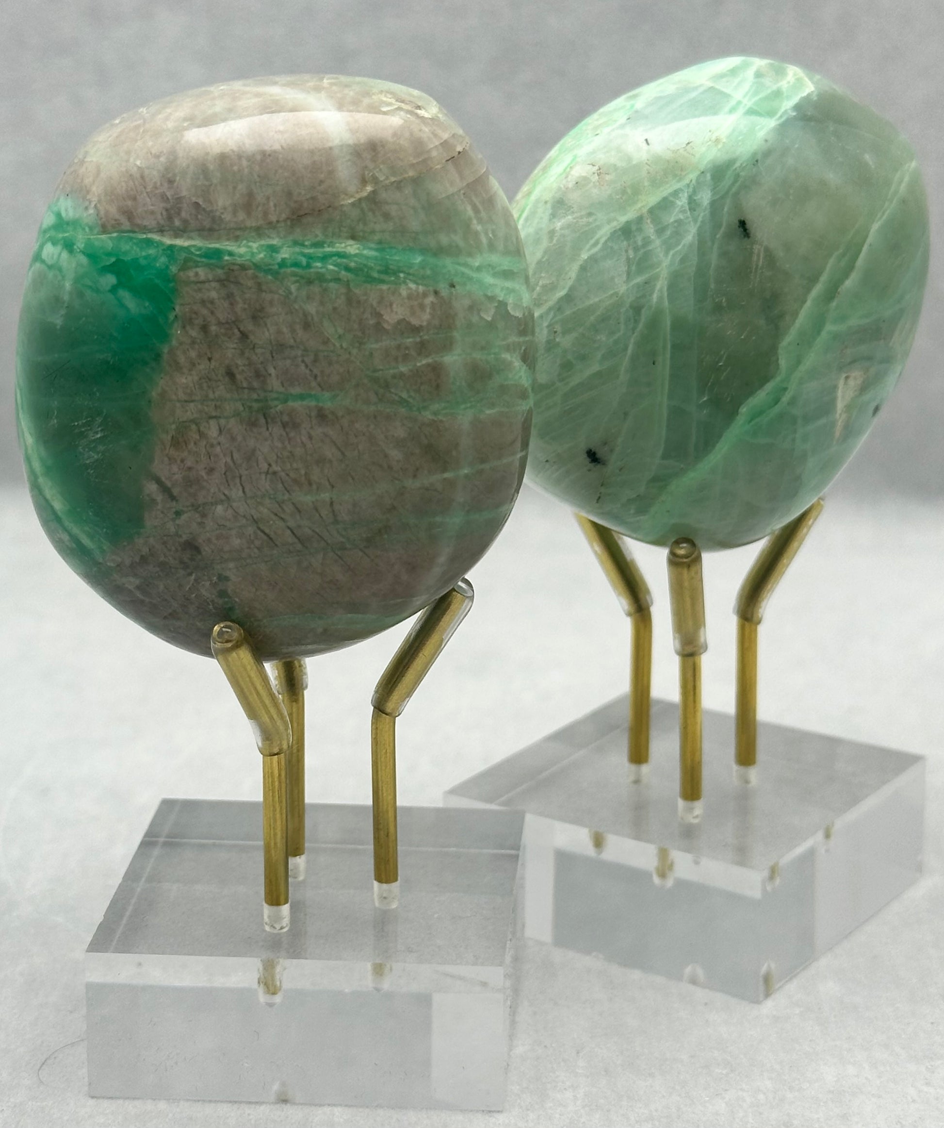 Get One with a Stand: For an elegant display, opt for a crystal-clear acrylic stand to showcase your Garmerite stone beautifully, as pictured. These stones offer you a choice of two different stands.