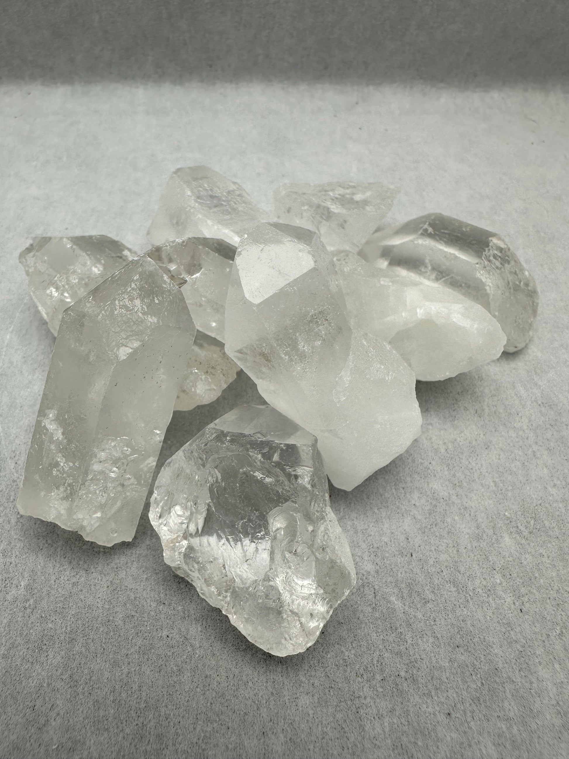 Each raw Clear Quartz stone is completely natural and unpolished, ensuring that its energy remains pure and untouched. Some pieces will appear more transparent, while others may have milky inclusions or natural fractures that enhance their beauty and uniqueness. Whether used for meditation, energy work, home decor, or crystal grids, these raw stones carry an undeniable presence of high-frequency energy.
