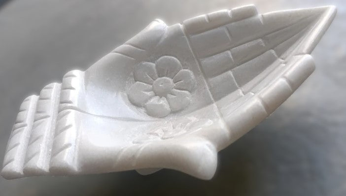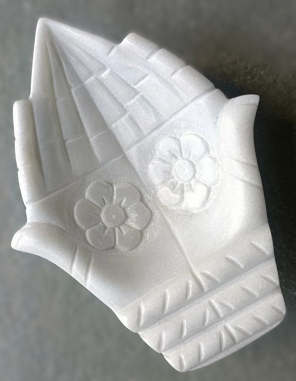 Embrace the sacred union of spirit and intention with our Hand Shape White Marble Bowl Burner, a breathtaking piece handcrafted from premium white marble. This exquisite burner, sculpted to depict two hands gently joined in a gesture of prayer or offering, radiates purity, connection, and divine energy. Its smooth, polished surface and natural marble veining create a stunning visual, while its 6-inch length and shallow bowl design make it perfect for burning incense, sage, or palo santo. Unlike mass-produced or synthetic alternatives, our burner is ethically sourced from artisans in India, ensuring authenticity and timeless craftsmanship. Transform your space into a sanctuary of peace with this elegant, multifunctional piece.