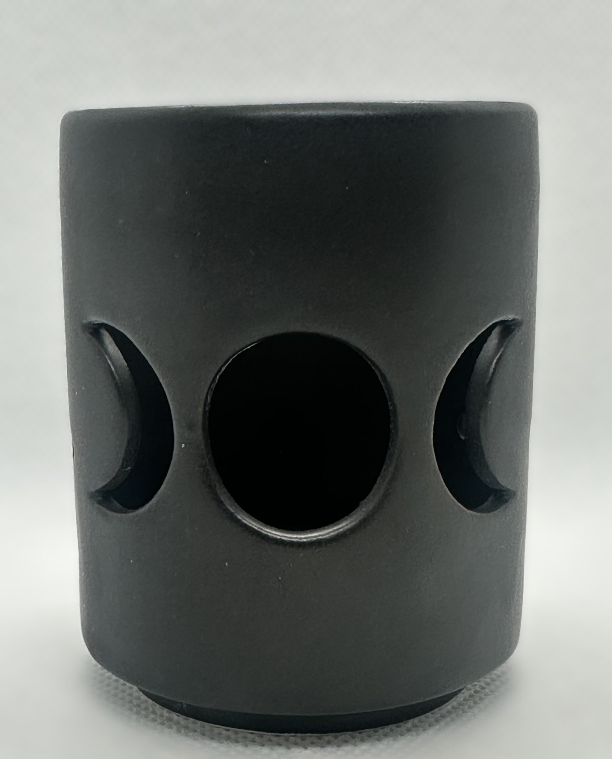 This ceramic tealight holder features a cutout triple moon design in a cool, matt black finish. The triple moon represents the stages of a woman's life; the mother, the maiden, and the crone. Perfect for festive Halloween decor or a spooky feel all year long. Holds one standard tealight candle.