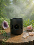 Welcome to the mystical world of our Triple Moon Tealight Candle Holder, a perfect addition to your metaphysical collection. Crafted from sleek black matte ceramic, this elegant cylindrical holder features a captivating design with two crescent moons and a central circular cutout on the front, complemented by a starry pattern of small star shapes and dotted holes on the back. This unique piece is designed to enhance your spiritual space with its enchanting aesthetic, ideal for use in meditation, rituals, or simply as a decorative accent in your home.