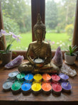 Using Chakra tealight candles in these corresponding colors during meditation, energy healing, or spiritual practices is believed to help balance and align the body's energy centers, promoting physical, emotional, and spiritual well-being.