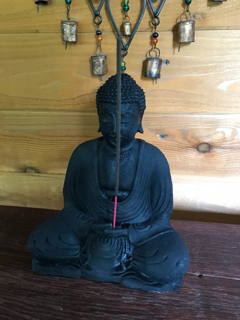 Transform your home, your garden or special personal space into a sanctuary of serenity with this exquisite Buddha statue, meticulously crafted from natural volcanic stone. This timeless piece is more than just a decoration; it is a symbol of tranquility, wisdom, and inner peace, designed to inspire a sense of calm wherever it is placed. Whether you’re creating a sacred space indoors or enhancing the harmony of your outdoor environment, this statue serves as the perfect centerpiece. This gorgeous Buddha statue thoughtfully includes a hole intended to be a holder for an incense stick, allowing you to infuse your space with calming aromas, enhance your meditation practice, and create an atmosphere of tranquility and spiritual focus.