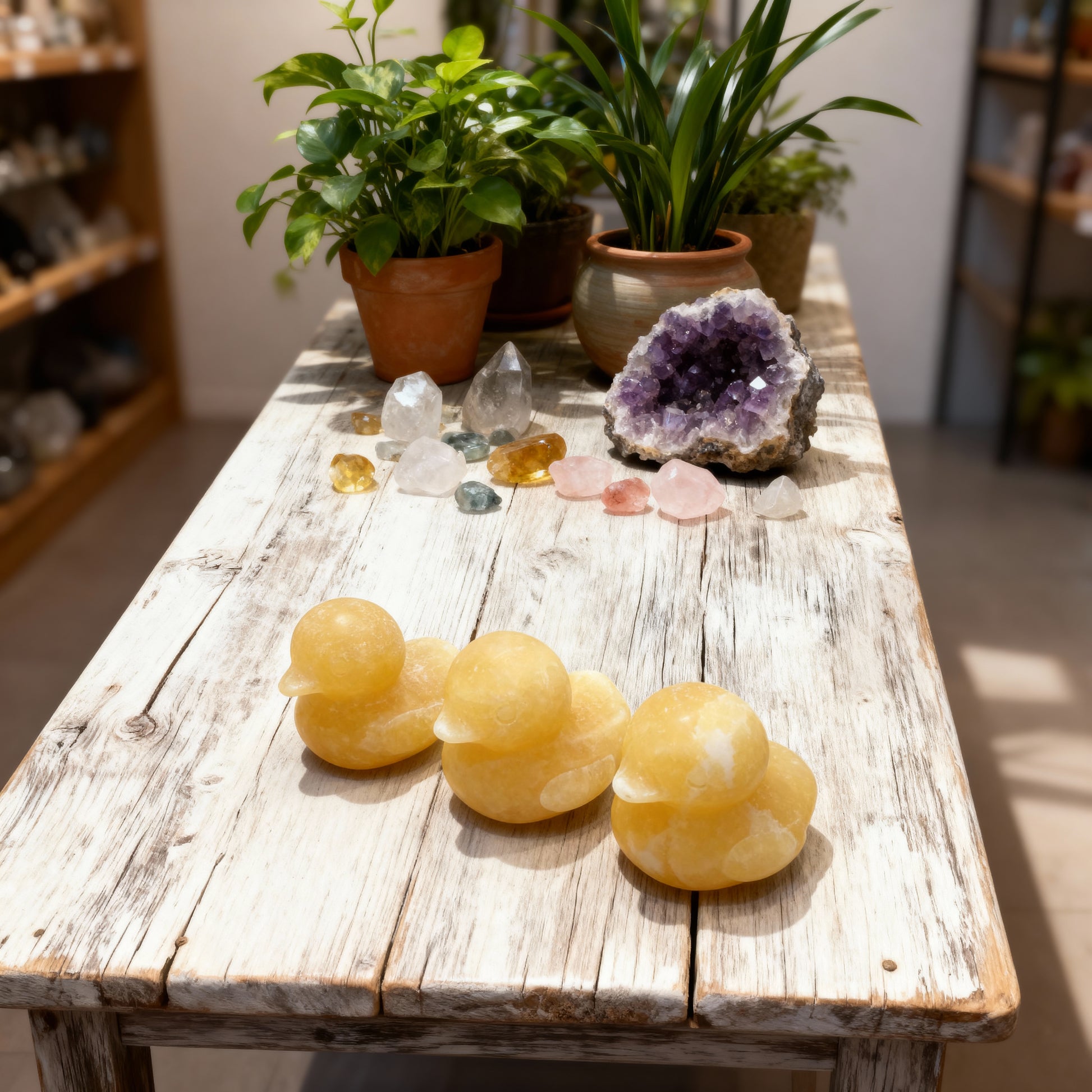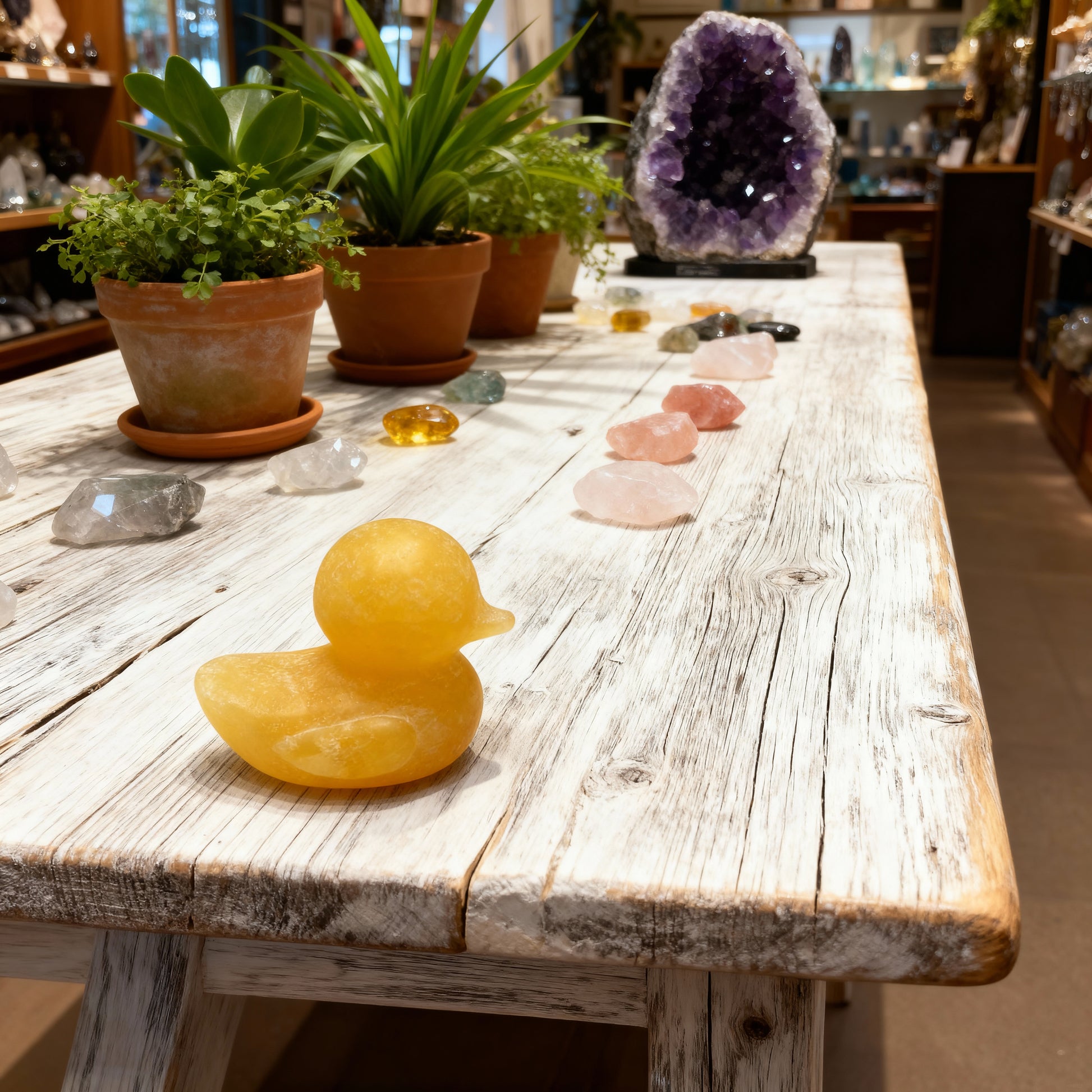 Place your Yellow Fluorite Duck where you need lightness of mind and gentle uplift—on a workspace, meditation area, or bookshelf. Hold it during contemplation to brighten inner vision and restore mental clarity.
